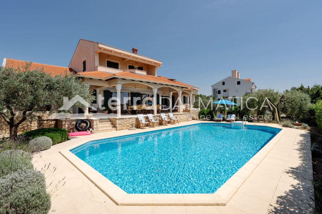Sve prostorije u kući imaju panoramski pogled na more, a mirna okolina i blizina plaže čine ovu nekretninu idealnom za obiteljski život, odmor ili turističku investiciju. Grijanje je riješeno kombinacijom toplinske pumpe, klima uređaja i kamina, a vila je u potpunosti namještena.
